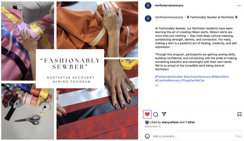 In the spring of 2025, we began talking with Together We Can about bringing a sewing program to their Women’s Recovery Program. The offering was met with gratitude and a sense of partnership. It has been a smooth launch, and the program is now running weekly. Everyone at Together We Can, and Northstar Recovery has gone the extra mile to make sure these women know they are cared for.